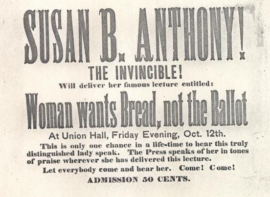 Likewise, observers who attended Susan B. Anthony’s lectures perceived that she cared only about making her case, not about raising her standing in the eyes of the audience. She always wore black to speak, so as not to distract from her message. In the words of a journalist from Indiana:
